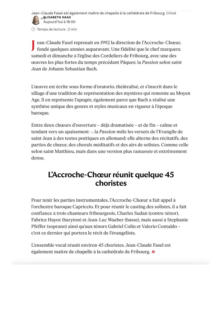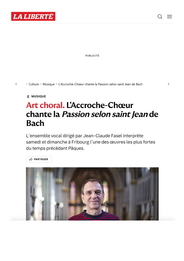 Passion selon Saint-Jean by editeur on Avr 02, 202516 octobre 2025 Article paru dans La Liberté le 2.4.2025. Navigation de l’article Previous: C’était l’Avent de L’Accroche-ChoeurNext: Les 5 et 6 avril 2025 nous avons interprété la Passion selon St-Jean